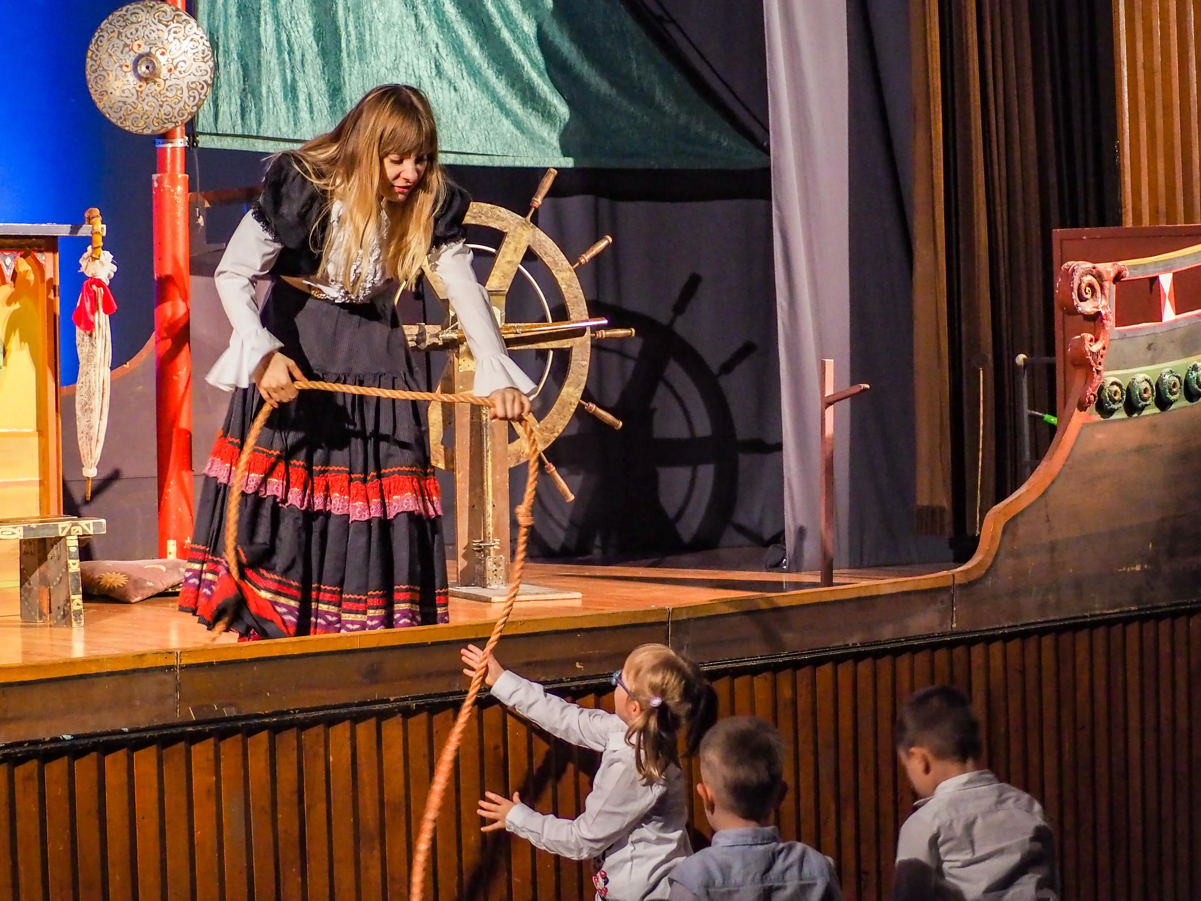 - interaktywny spektakl z udziałem publiczności (wspólne zadania, okrzyki pirackie, morskie wyzwania),
